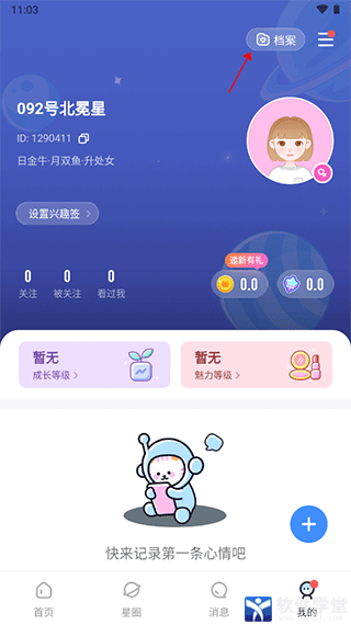1、下载好app后,点击右下角的【我的】,在这里点击右上角的【档案】。