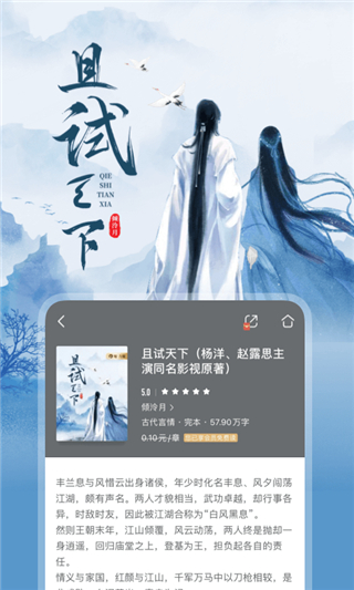 咪咕阅读app是专为小说阅读爱好者们打造的一款精品小说阅读软件应用,软件界面简洁,功能丰富,为用户们提供了海量网络书籍资源,多种不同类型题材,满足你的不同阅读需求。