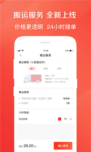 4、提供装卸、搬货、运输等多种服务,线上支付更方便;