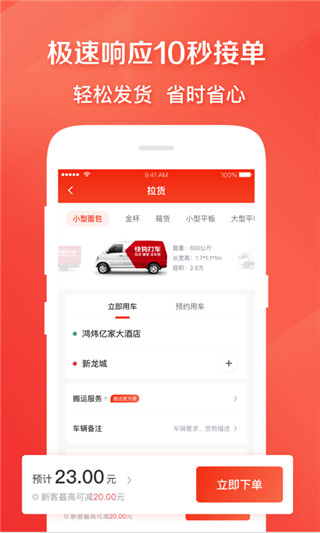 3、一键叫车、即时送达;更有中国人寿保险公司承保,货物出行更安全;