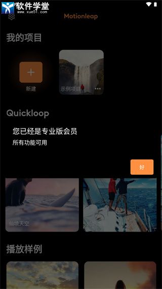 视频编辑软件,该软件致力于帮助各位用户能够轻松制做一个全新的动画特效动态图。通过使用这款软件,我们可以将视频、图片等内容进行任意创作编辑,并在制作过程中加入各种精美滤镜效果,让我们的照片图片看上去能够更加具有特色。其内置的更多丰富的特色素材,还可以帮助大家能够更为轻松的完成你的大胆创意想法。且软件使用操作简单,还有非常详细的引导教程可供你参考,相信不论是专业图片编辑制作师还是新手小白都能够快速学会制作的。不仅如此,motionleap软件还为用户们提供了更多天气图层特效、星光滤镜素材,大家可以对照片中的任何一个元素进行编辑改造,如让瀑布倒流、波浪翻滚等等,让你的照片看上去能够更加的具有艺术感,令人眼前一亮!