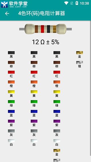 四色环(码)电阻计算、五色环(码)电阻计算、电感色环(码)计算、贴片电阻(代码)阻值、欧姆定律计算、焦耳定律计算、感抗/容抗计算、法拉第电磁感应定律、0.4KV级小型发电机、用电设备的Kx、cosp、tanp、保护熔体电流、串联电路分压计算、并联电路分流计算、截面积与载流量查询。