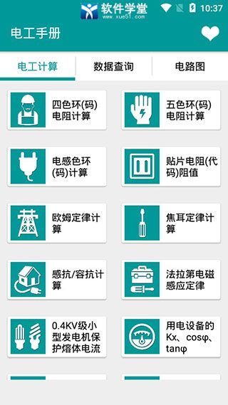 电工手册app是专为电工行业用户们打造的一款学习辅助使用软件工具,软件致力于为电工从业人员提供更便捷的线上学习服务。在这里详细介绍了电工电子行业所涉及的各种理论基础及其常见疑难点,集电工计算、数据查询、电路图等三大模块于一体,旨在为用户们带来更为简单明了的学习体验。海量丰富的电路相关知识,不论你是想要了解四色环(码)电阻计算、五色环(码)电阻计算、电感色环(码)计算,还是学习电学基础知识、电工工具、变配电及低压电路安装、小型同步发电机等等内容,都可统统为您实现。详细的教学课程,丰富的案例解析,让我们可以更好的掌握与理解。且电工手册软件界面设计简洁,使用操作简单易上手,不论你是电工行业的新人,还是从事职业多年的资深老师傅,都可以在这里获得你想要了解的相关资讯内容。