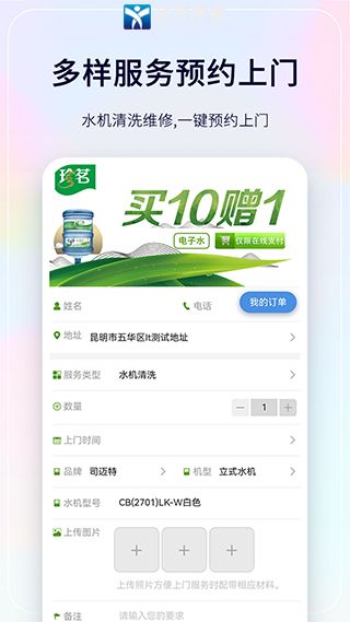 3、多样服务预约上门,水机清洗维修一键预约上门。