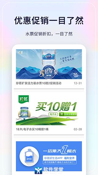 珍茗好生活app是一款非常便捷使用的预约送水服务平台,该平台为用户们功能了多种丰富的送水上门服务功能,通过使用该软件让我们足不出户即可轻松预约订水。多种类型桶装水选择,可满足你的不同用水需求。