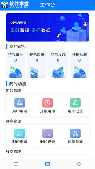 用印宝app是江苏群杰物联科技有限公司专门针对企业公司用户所推出的一款企业印章管理软件工具,该软件页面简洁,功能强大,通过先进的互联网技术制作,可支持用户进行印章远程管理,有效节省印章使用审判流程时间,让我们能够更为高效、便捷的进行办公。软件软件还可实时追踪每一次印章使用时间及其盖章公文照片,完全不用担心印章安全防护问题。