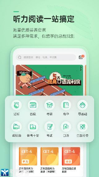 轻听英语app,它是由北京艾斯酷科技有限公司专为广大学生用户们研发制作的。软件内容功能强大,学习资源丰富,拥有全网海量英语学习资源,不论你是想要备考雅思、托福还是考研,都可以在这里进行针对性训练学习。更多丰富有趣的课程教学,让我们可以更好的进行学习,有需要的朋友欢迎前来本站下载体验。