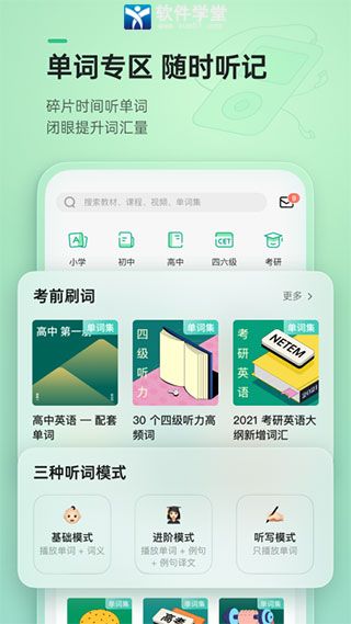 记生词还能用听的,考前刷词更省时间,走在路上也能学。
