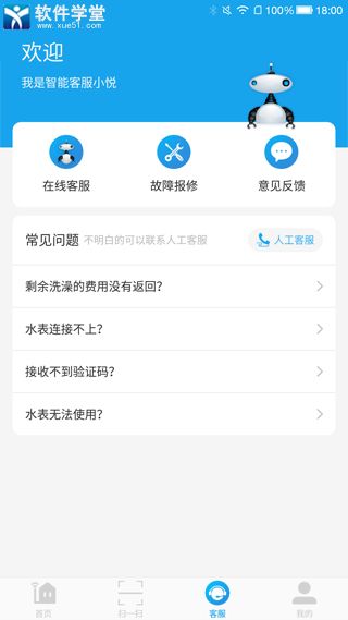 悦享校园app是一款非常方便实用的校园用水服务类生活应用软件,该软件以开启无卡校园为理念的产品,旨在为大学生校园用水提供更为便捷优质的生活服务。软件功能强大,不仅具备了在线支付,无卡消费,搜索设备,蓝牙连接等四项使用功能,且使用操作简单,用户只需一键扫码即可轻松连接校内各大公共用水服务设备,然后就可以立即用水了,十分的方便快捷,有了它我们再也不用去排长队充值水卡了。并且热水卡的剩余用度和在线充值缴费记录全都清晰可见,各种各样的热水供应通知通告也都会让你及时知晓。在这里学生们也可以通过这款软件来连接洗衣机,只需将洗衣机设备通过蓝牙或扫码的形式连接起来,我们就可以在线查看洗衣机当前的状况,知道哪些洗衣机是空闲的,哪些是正在使用的,非常方便。悦享校园软件还包含人工客服助手,当使用过程中有出现任何故障问题,都可即时咨询客服为你解决。