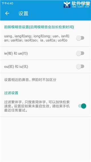 1、支持简繁切换、支持模糊音搜索,如相近的鼻音、韵母。