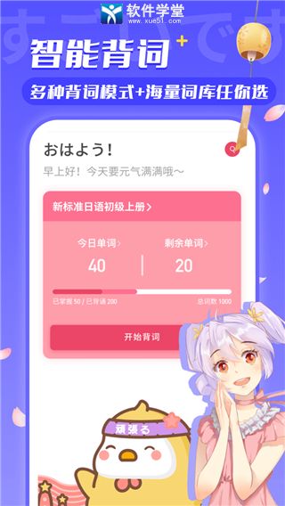 新标日、新编日语、能力考等各类词库一应俱全,全新的背词模式,科学高效。