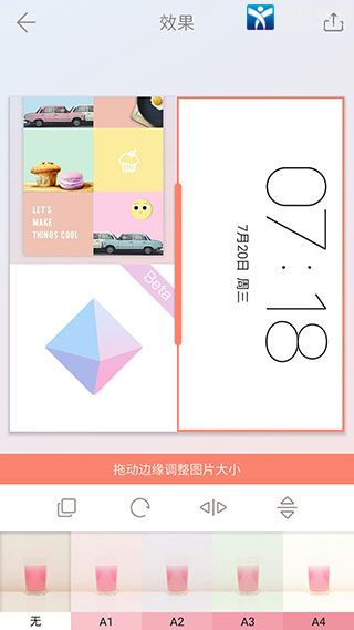 3、依据选择的照片自动生成不同的模版样式,还能根据需要将模版切换至不同比例。