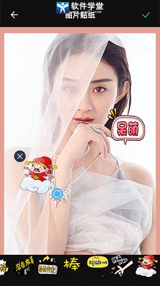 继承了各种漂亮饰品、边框、有趣印章、自定义文字泡泡和时尚文字素材,便于用户创造富有个性的照片。