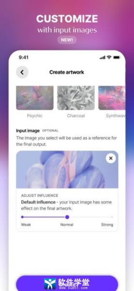 ai作画生成器软件是一款利用人工智能AI智能生成图像的作画神器app,由于它生成出来的图像就像梦境一样绮丽炫酷,因此也被不少国外用户成为dream!随着网络科技的发展,使用人工智能的力量创造美丽的艺术品也被广大用户朋友们所关注,在这里不需要什么专业绘画技巧,我们只需输入关键词提示,然后选择你想要的艺术风格,即可看到该软件会在几秒内将你的想法轻松变为一幅AI梦境绘画,十分的简单方便!且该软件所将生成的画作图像质量非常高,所匹配度也都非常的精准。软件生成速度快,对生成内容没有什么限制,不论你想要创建任何物品内容,都可以轻松为你搞定。外星生物太空站、城市日落、彩虹森林等等,只要你能想象到的东西,都可满足你的一切幻想。此外,在ai作画生成器软件内还为用户提供了海量创作素材,都可以免费使用,创造专属于你的精彩梦境!