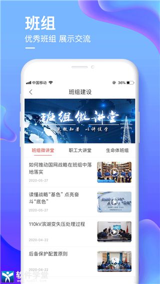 1、拥有丰富的班组建设栏,展示班组微讲堂、职工大讲堂以及生命体班组栏。