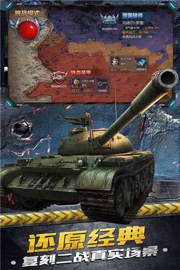 可以获得坦克车必备车组,每次挑战都可以选择三个关卡(易/中/难)。