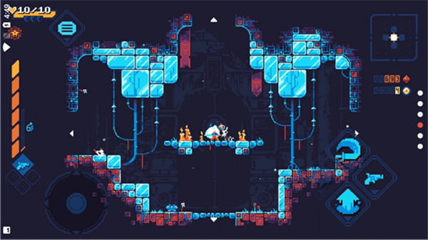 3、采用了鲜亮明快的像素画风,玩家将能操纵主角在狭小地牢里闪转腾挪,