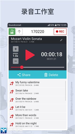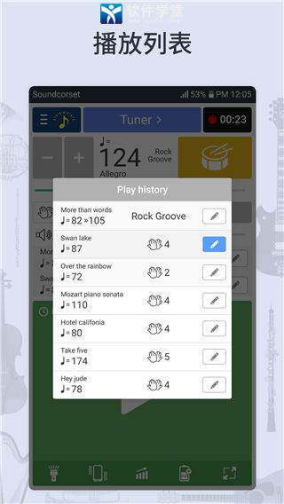 同时它还可支持多种节奏、黑屏电池节能等模式,你可以按照自己需求自由选择工作模式进行调节,也可直接打开调音器,设置调音器上的音量。也可以用它来记录下每一个乐器演奏的过程,测量声音音调和强度,在线对调音器的频率进行调节,还可以自定义设置调音器频率,总之调音器和节拍器是一款非常不错的手机乐器调控软件应用。