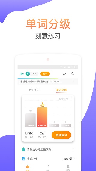 3、单词电台、极速刷词、词义配对、听写练习、抽认卡片……随时随地掏出手机,多种酷炫的单词复习姿势任你挑选,备考从未如此轻松而高效