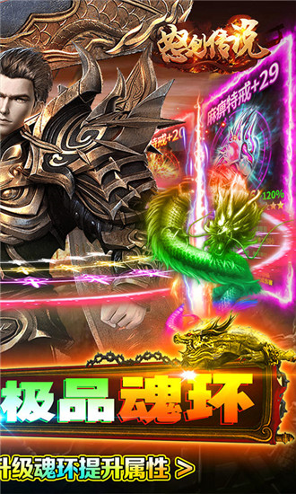 怒剑传说官方版是一款非常好玩的传奇游戏,该游戏采用了十分炫酷的复古画风,无论是人物建模还是场景的氛围营造上都凸显出一种古典的感觉,可以说是对喜欢玩复古传奇的玩家非常的友好。而且玩家还可以在此基础体验该游戏的特色玩法,玩家只要在游戏中不断刷怪就可以获得非常稀有的魂环,每一种魂环都是有着不同的提升的,玩家可以在下载游戏后自行体验一下。