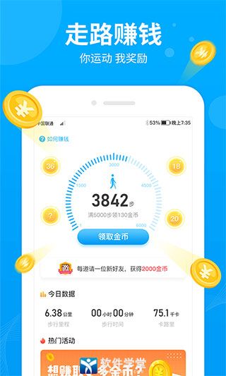 步数目标自定义,走完还能换金币,轻轻松松把钱赚,健康快乐不费力。