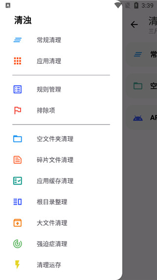 清浊app是一款功能强大且专业实用的手机清理软件应用,它是由网友FarPlace自制分享的。尽管软件体积小巧,仅有3兆左右大小,但是该有的手机瘦身清理工具却是一点也不少,多种多样的应用通用清理、一键清理、卸载残留、电池优化、空文件夹清理、APK清理、病毒查杀、根目录整理等等各项功能全都一应俱全,能够很好的满足不同用户垃圾清理需求,让我们从此告别手机卡顿。在这里不论是是手机