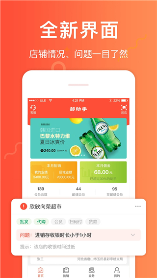 邮助手app是一款专门针对邮政各级地面人员与掌柜人员所打造的一个辅助实用软件工具,软件界面设计简洁,功能齐全,能够很好的为用户提供便捷沟通,自动查看店铺订单销售及其店铺运营情况!