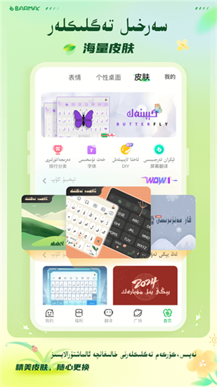 在这里,还内置了超多精彩特色皮肤,可支持用户随心切换。当然不仅仅是维语,在BARMAK输入法软件内还为用户们提供了更多汉语、英语以及在线斗图功能,真正实现汉维汉语轻松翻译,让你打字速度可以得到大幅度提升,有需要的朋友可以来下载试试!