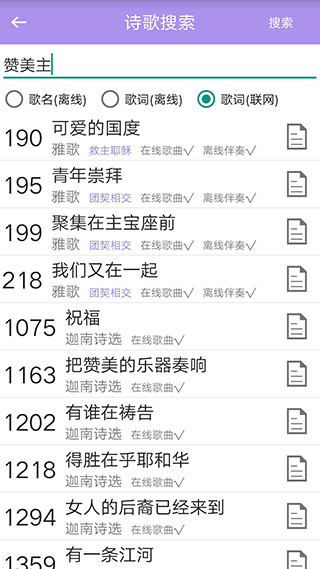 1、诗歌本app收集了众多赞美诗歌,包括歌谱,歌曲,部分还有伴奏。