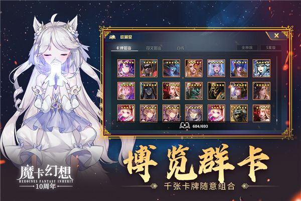 游戏中玩家通过收集卡牌、技能符文,并强化提升它们的品质,运用你的策略,组合成最佳的对战阵容迎战强敌。当然喜欢收集养成玩法的朋友们在这里也可以得到极大的满足哦!走华丽风格的魔卡幻想,其高品质的画质造就了上百张精美绝伦的卡牌,配以战斗时华丽眩目的技能效果,让你在游戏时享受一场视觉大宴;卡牌角色或清新可爱或华丽妖冶或气势如虹,每张都有独特的获取方法,让你战斗之余体味一步步收集卡牌之趣。