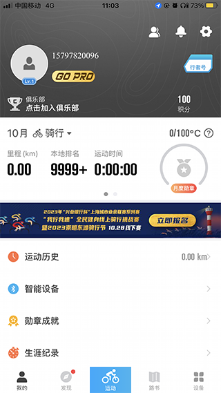 用户登录之后就会进入个人中心,在个人中心可以查看自己的骑行记录等。