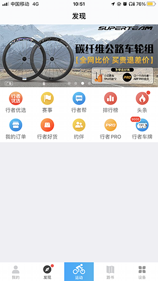 用户点击下方发现,可以查看骑友发布的动态,也可以点击行者优选进入商城,还可以查看排行榜等等。