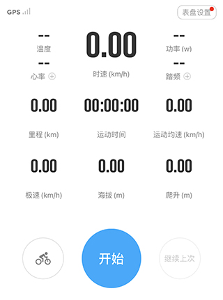 用户点击运动,即可开始记录自己的运动里程、时间、路线等,点击左下角骑行图标可以选择运动的种类,可以在骑行、跑步、徒步、滑雪、游泳、室内训练、自由行七个种类选择。