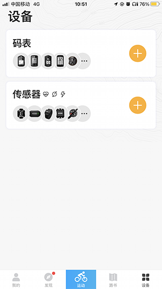 用户点击设备,可以设置可连接的码表和传感器,方便用户记录运动信息。