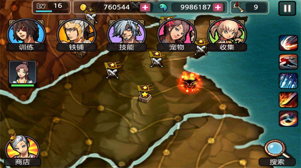 1、移动:只要在屏幕上点击一次,角色就会向该方向移动,到了就会停下来。所以持续不断的点击屏幕(非快速)就能使角色在地图上自由移动。