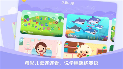 久趣英语app独家卡通IP设定,在线交互式动画学习,让孩子从"要我学"变成"我要学"。生动有趣的故事情节,形式多样的激励游戏,契合孩子心理特点,让孩子的注意力高度集中,学习效果事半功倍