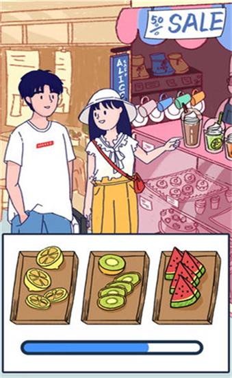 8.帮男主选衣服,然后开始约会,点击图中的水果就可以了