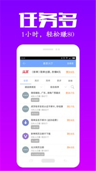 众人帮app最新版本是一款非常好用的兼职赚钱软件,这款软件中有海量的赚钱任务,各种类型丰富齐全,其中包括微信推广、简单关注、qq推广、注册认证、网络投票、下载试玩、问卷调查、网店推广等多种兼职类型,用户可以根据自己的兴趣和能力来自由选择完成。