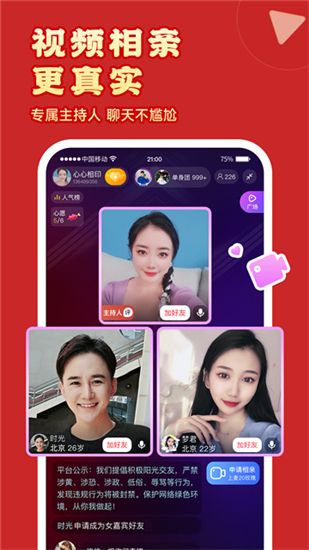 伊对相亲交友最新版是一款专业优质的社交交友相亲软件,该软件主要服务于广大单身人群,汇集了海量的单身资源,说不定你能结识到那个志趣相投的ta呢。软件为用户提供了视频交友模式,红娘视频帮你介绍对象,真人视频全面杜绝照骗交友,同时还有语音和文字等多种交流沟通方式,多场景的互动,为上千万用户创造更多恋爱机会,用户们可以在这款软件中认识很多好友,不断的拓展自己的社交圈子,并且寻找另一伴完成脱单。