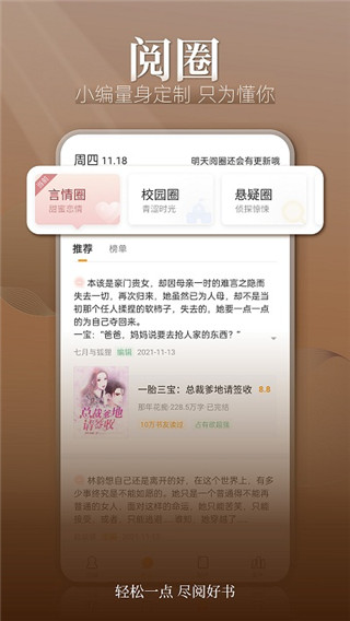 2、优质内容:大量完结、连载、出版小说,品质最优。