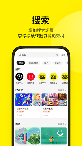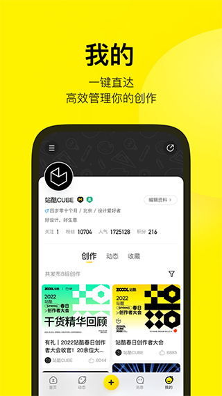 站酷app是专为广大设计师用户所打造的一个交流互动交友平台,在这里大家可以和著名设计师用户们一起探讨、交流、分享自己的设计创意,寻找更多的设计创作灵感,让你可以制作出更多专属于你的特色作品!