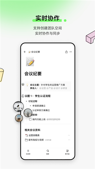 【团队协作】构建高效工作流,通过搭建团队空间,结构化沉淀和管理工作流程,多人多端实时协同互动,构建企业自己的一站式工作中心。