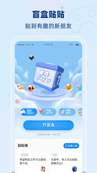 贴贴app和更多朋友们一起感受与众不同的趣味社交玩法体验。这是由天津又闲网络科技有限公司专门面向广大年轻用户所打造的一个趣味