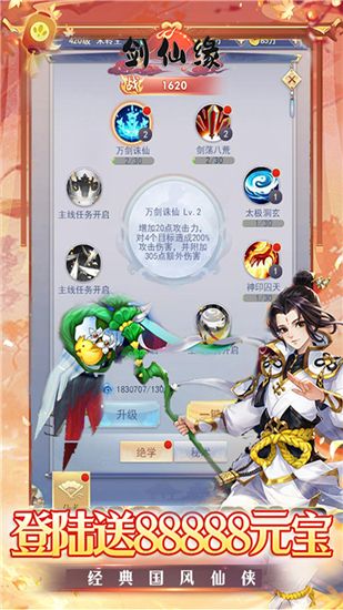 多样化玩法,仙盟争霸、仙界斗法、野外战斗、修真相结、跨服战场,帮派攻灭部族等等,丰富的pve和pvp玩法使得游戏不再单一,让玩家可以玩的十分过瘾;还有华丽时装、炫酷坐骑、玄幻神兽等你来收集培养,相信剑仙缘红包版能给玩家们带来一次不错的修仙之旅,喜欢的朋友快来来下载吧。