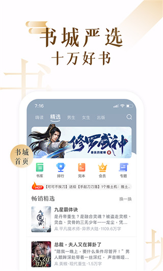 精准定位你的freestyle,新增本周热门、免费专区、包月专享、男生、女生、完本、出版等多个阅读频道,快速发现你的阅读喜好~
