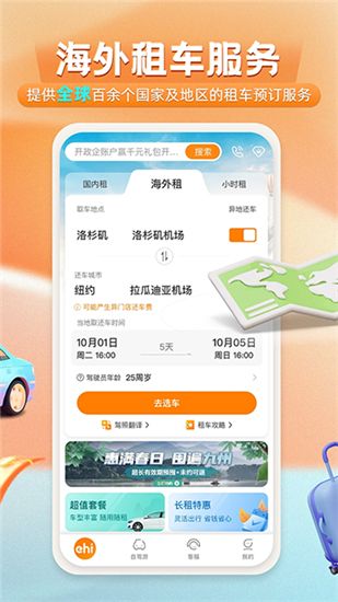 并且该软件还提供了各地区的推荐游记、自驾路线等,支持节假日提前预约车辆、查找附近停车场、加油站等功能,给予用户一站式的自驾游服务。另外一嗨租车最新版本还内置二手车售卖板块,平台提供安心便捷的购买渠道,所有车辆均来自原厂采购,辆价格透明,还提供历史维修及保养记录,售后服务完善让用户买的放心,开的安心,感兴趣的小伙伴快来下载体验吧!!
