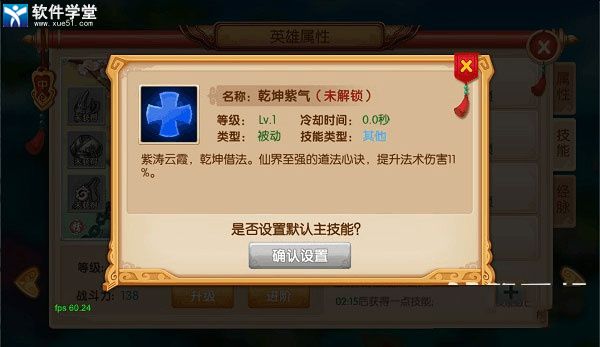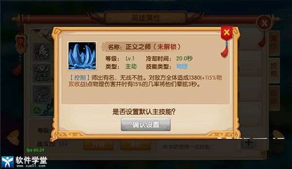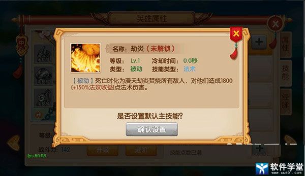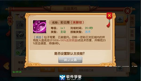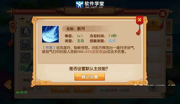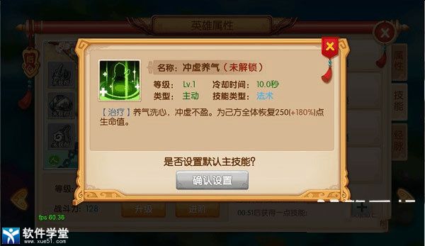 2、除被动技能外,每个英雄上阵时只能使用一个特定技能,只需将那个技能设置为默认主技能即可。