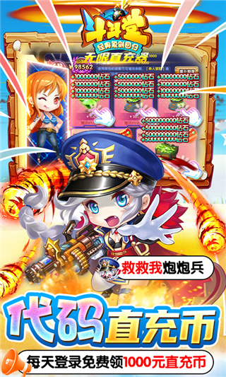 1、【代码直充】通关【单人冒险】获得直充币,使用直充币获得直充额度后,可进行代码直充,获得大量钻石的同时可激活超值累充活动奖励。还有每日礼包、每周礼包、超值礼包可以激活红色符文、9级宝珠、3S宠物奖励!