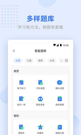 拥有历年真题、模拟题、章节习题答案解析、错题本、收藏夹支持错题消灭。