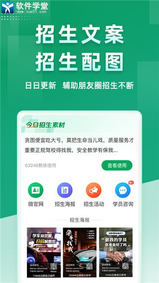 3、招生:每天更新招生文案配图,体系自动分配学员,招生不费力。